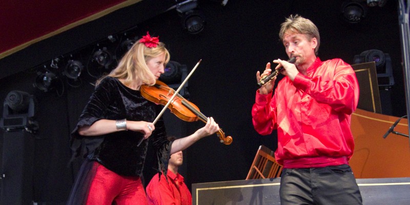 Red Priest is an early music group with a difference. A British Baroque instrumental group that was formed in 1997, originally with eleven members. Currently it is composed of four performers: Piers Adams – recorder, Adam Summerhayes – violin, Angela East – cello and David Wright – harpsichord. The group is named after the red-haired Italian priest and Baroque composer, Antonio Vivaldi. The quartet plays in a flamboyant, theatrical and virtuosic style making use of props, costumes, dramatic lighting and other effects. The pieces they perform are generally their own arrangements, though based very closely on the original music by Vivaldi, Bach and other baroque musicians. In addition to touring all over the world, Red Priest are a frequent guest on BBC Radio 3's In Tune programme. In 2008 the group launched its own record label, Red Priest Recordings. Their albums include Handel in the Wind, Pirates of the Baroque.