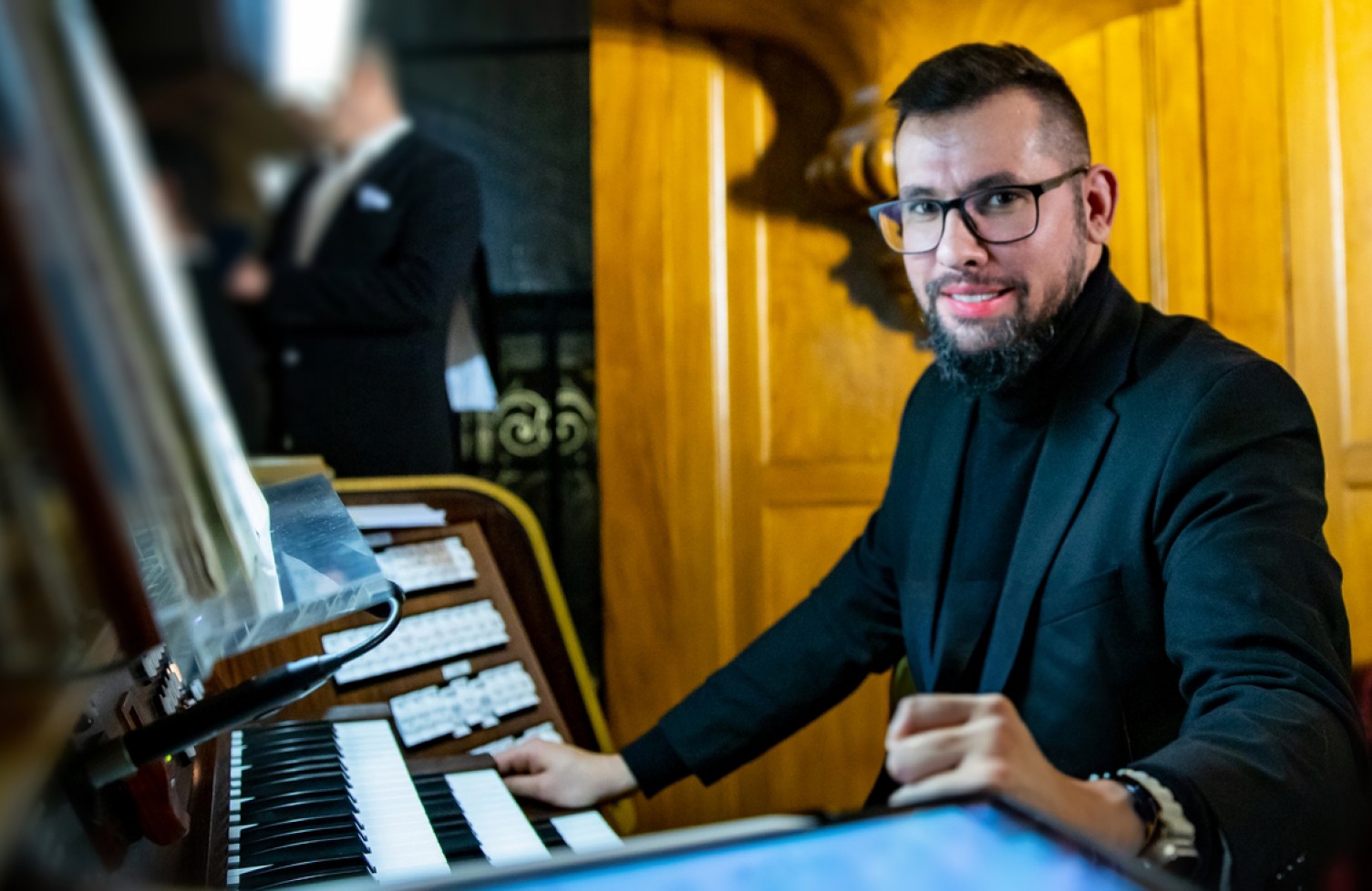 Az ő nyomdokán halad s fejlődik orgonistánk, Gábor, kinek tehetségét a koncerten elhangzó orgonaművekkel hallhatjuk.